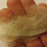 - Come vedete rispetto all’immagine precedente,il cotone risulta quasi trasparente.Per farlo diventare così,sfilacciatelo con delicatezza senza romperlo.Una volta che sarà semi trasparente fermatevi