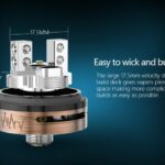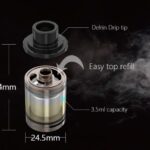 Innanzitutto va specificato che è un atomizzatore da cloud chasing dal diametro di ben 24,5 mm. Nonostante la sua larghezza, è un atomizzatore molto corto ed assolutamente estetico. Sta bene su ogni box.